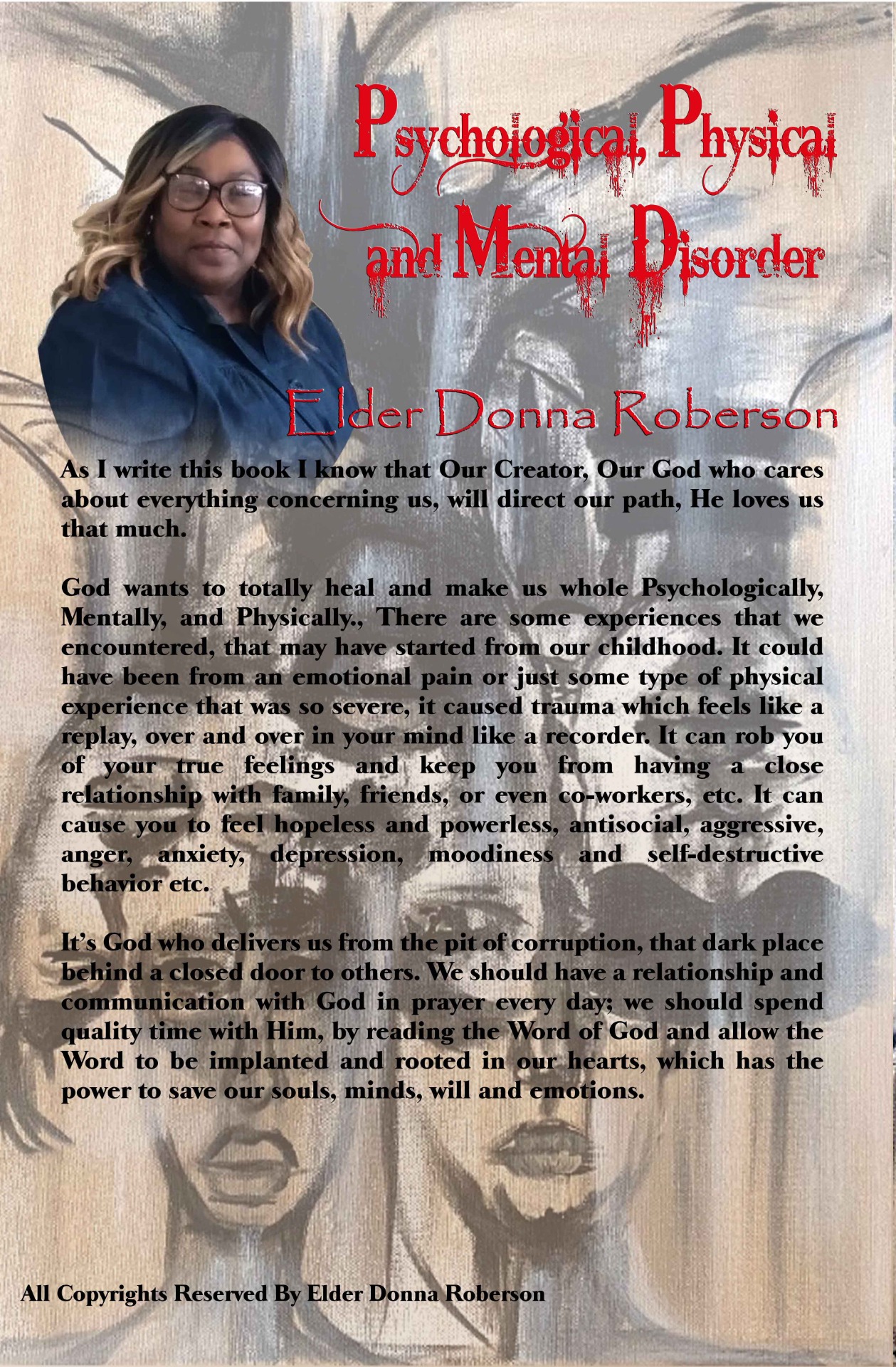 God wants to totally heal and make us whole Psychologically, Mentally, and Physically., There are some experiences that we encountered, that may have started from our childhood. It could have been from an emotional pain or just some type of physical experience that was so severe, it caused trauma which feels like a replay, over and over in your mind like a recorder. It can rob you of your true feelings and keep you from having a close relationship with family, friends, or even co-workers etc. It can cause you to feel hopeless and powerless, antisocial, aggressive, anger, anxiety, depression, moodiness, and self-destructive behavior etc.